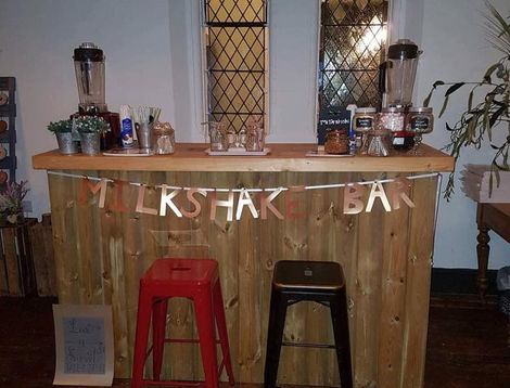They're all served from our very own "Shake Shack" - our purpose made rustic bar. All of our shakes consist of a delicious thick milkshake, made from ice cream, and include a doughnut and selection of sweet accessories.