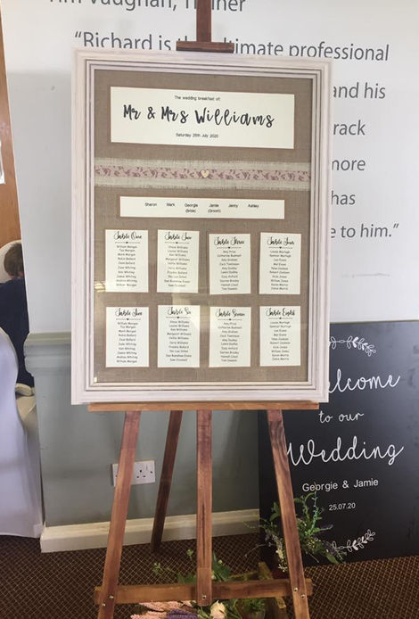 - Hessian & Lace Framed Table Plan & Easel with Printed Cards