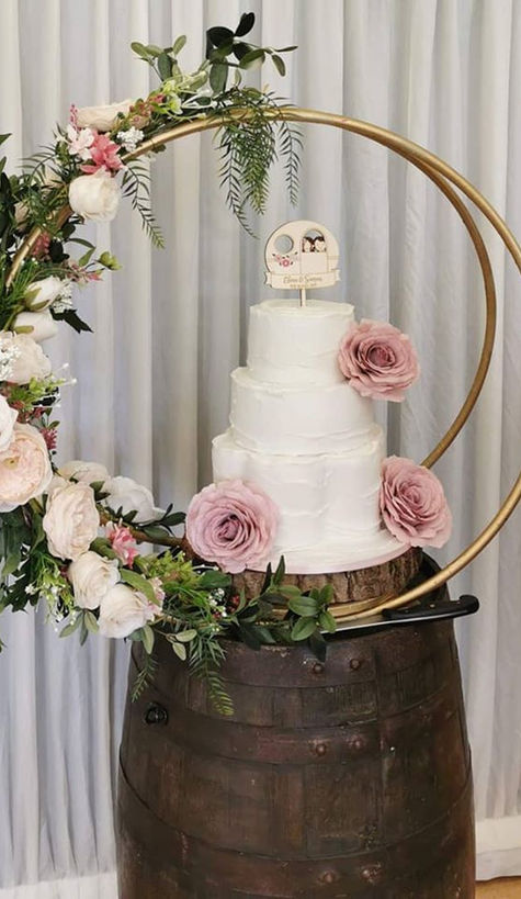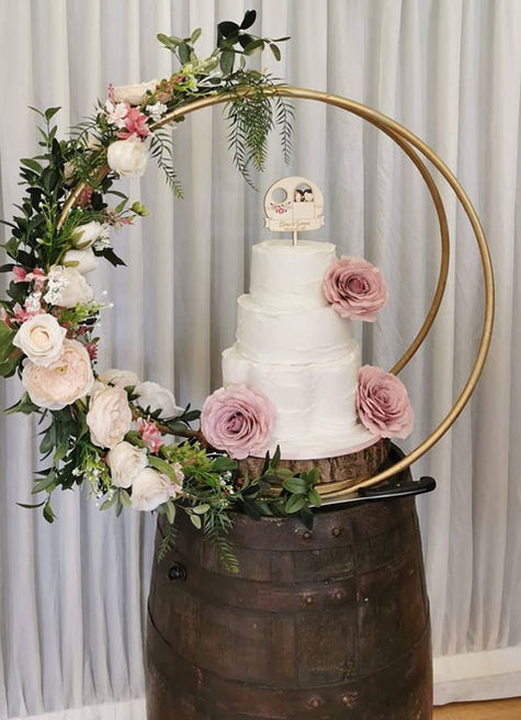 - Cake Display Table Dressing to include Floral Hoop Cake Stand
